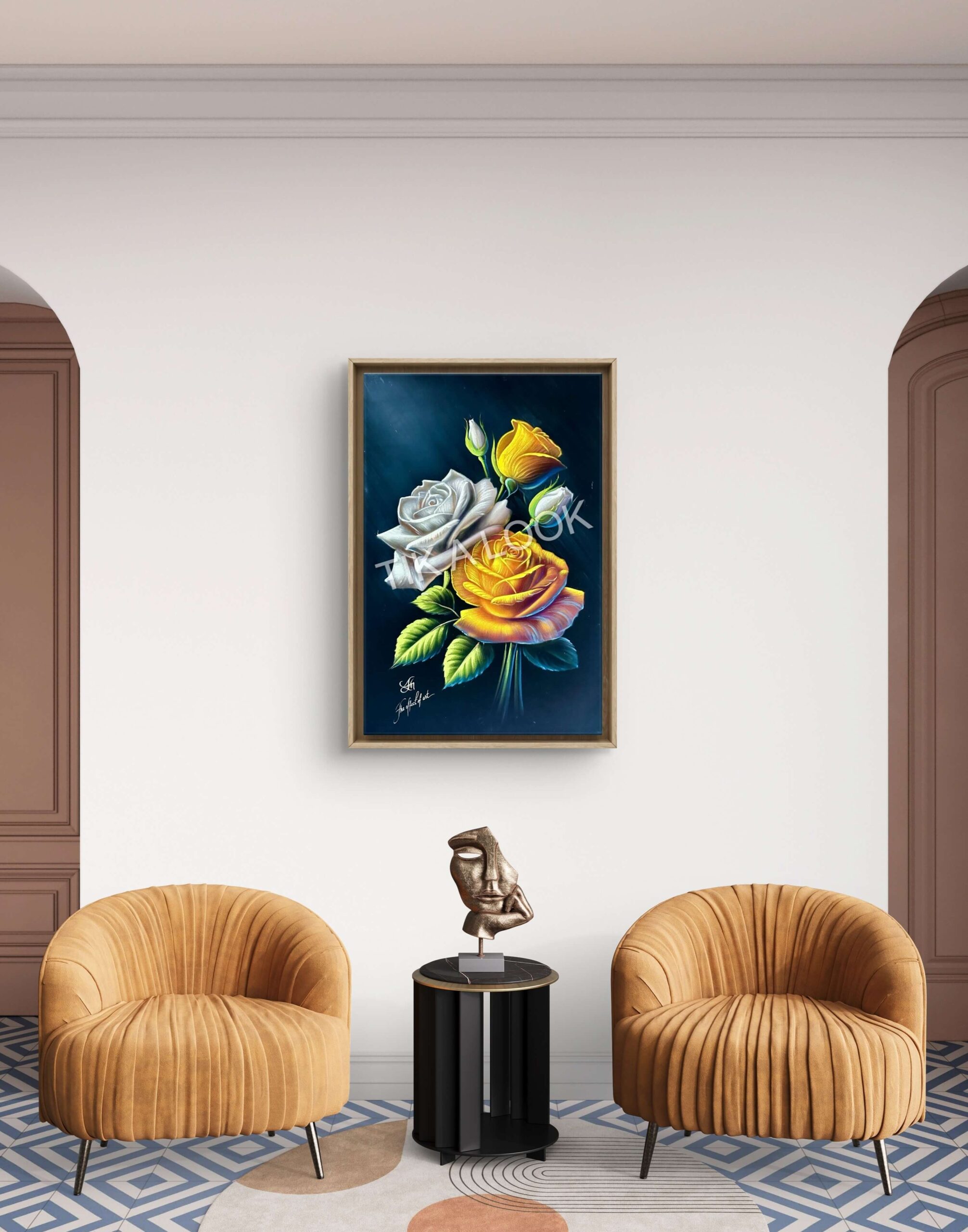 This work is not decorative alone—it is atmospheric. It brings refinement to a space, offering emotional balance and timeless elegance. The roses do not compete; they coexist, reminding us that harmony is born from contrast.