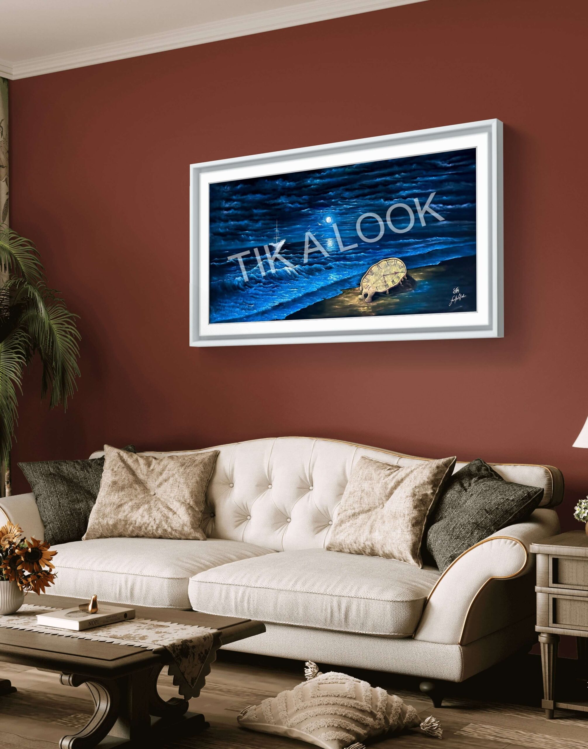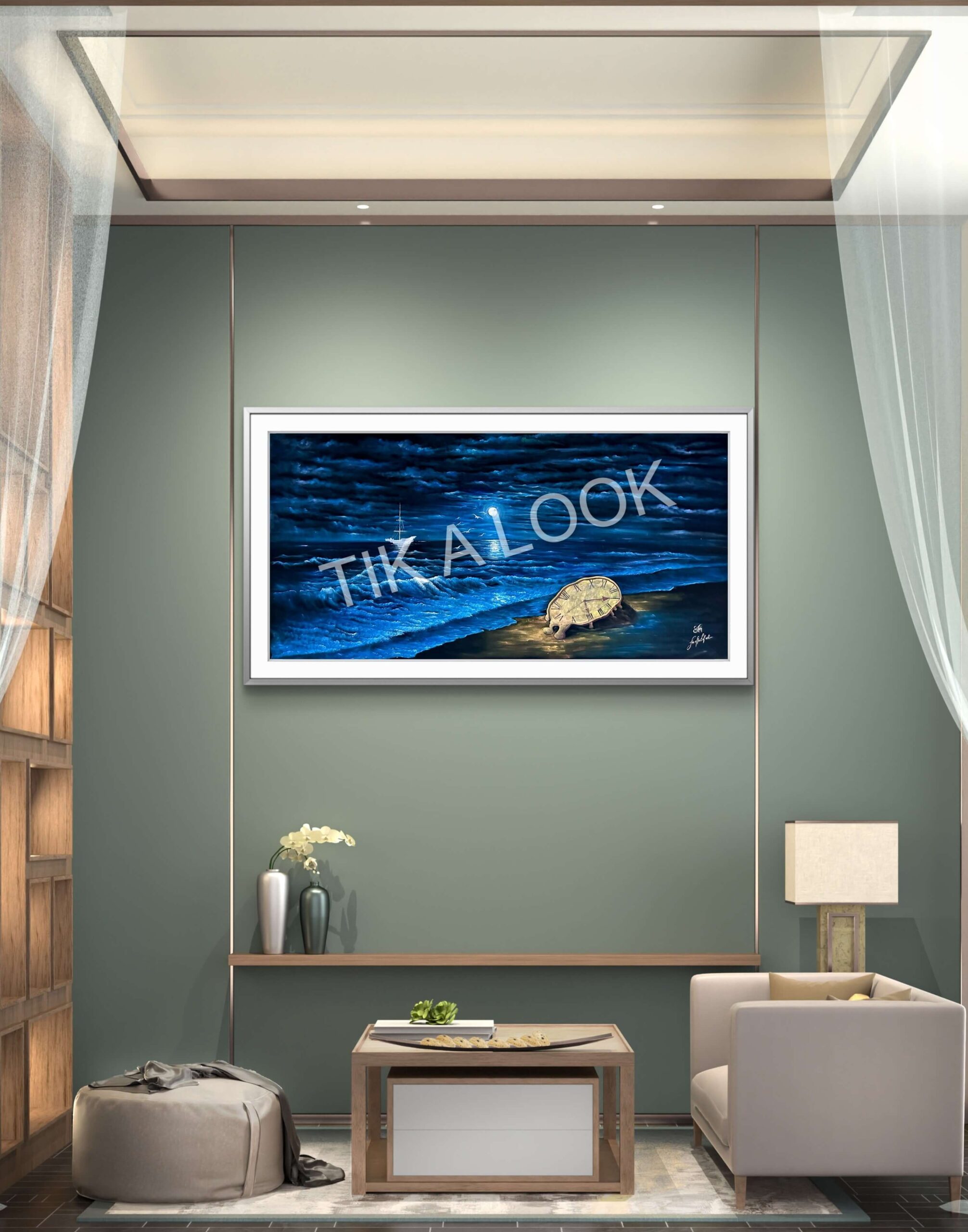 Painted on velvet, the surface deepens the darkness of the sea and intensifies the glow of moonlight, adding tactile richness and emotional depth. Time here is no longer measured—it is felt.